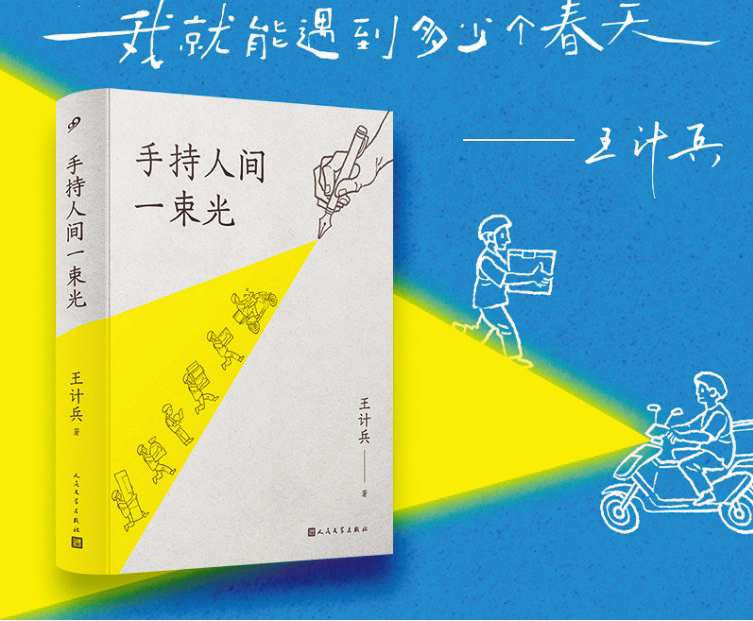 2022年,诗人陈朝华在社交平台上转发了一首不到百字的小诗《赶时间的人》,将“外卖诗人”王计兵推送到了大众面前。其充满生活质感的文字再搭配上“外卖小哥”的身份,让他在网络上迅速走红并持续“破圈”,在社会上获得了大量关注。生活迅速为王计兵打开了不同于外卖小哥的另一条道路,时至今日他已经出版了四本诗集,《手持人间一束光》正是他今年的全新诗歌力作。