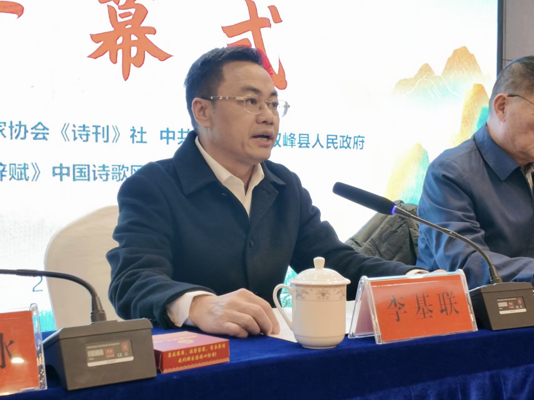中共双峰县委书记李基联在致辞中热情欢迎各位诗人的到来,他表示,近年来,双峰聚力打造以蔡和森同志为代表的红色文化、以蔡畅为代表的女杰文化、以曾国藩为代表的湖湘文化品牌。期待各位诗人以诗心感应双峰的人文脉动,以诗笔描绘双峰的山水气象,让这片红色沃土的历史底蕴、时代新貌与独特魅力得以生动传播、久久流传。相信这份诗意的凝聚与抒写,必将助力双峰把深厚的文化优势转化为高质量发展的现实动力,让双峰真正成为令人向往的“诗和远方”。