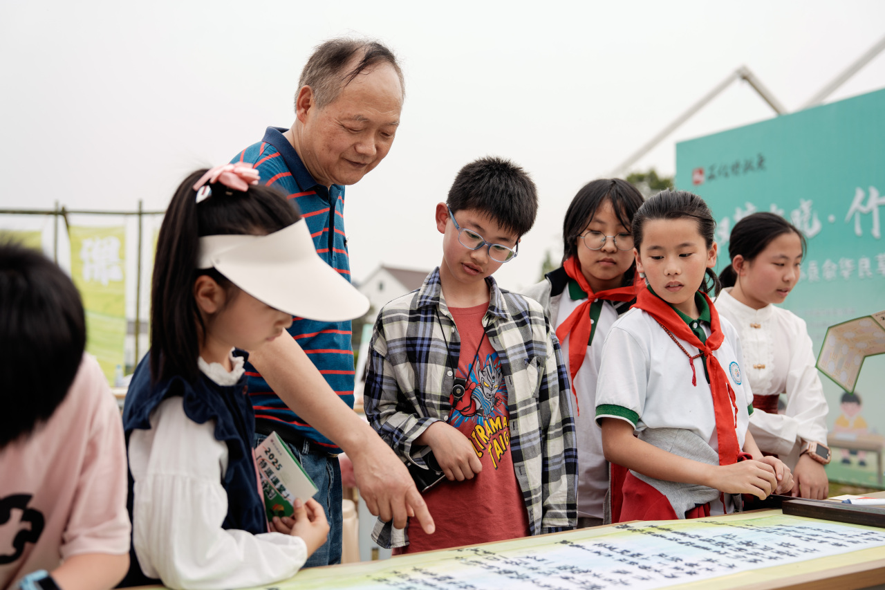 在新丰,俞华良不仅是文化的传播者,还是本土文化的传承者和深耕者,为乡村振兴寻找文化之源。作为南湖区文化特派员,他依托竹林村文化礼堂和晓弦诗文展馆,积极开展各类文化教育活动,为孩子们点亮阅读与诗意的火光。