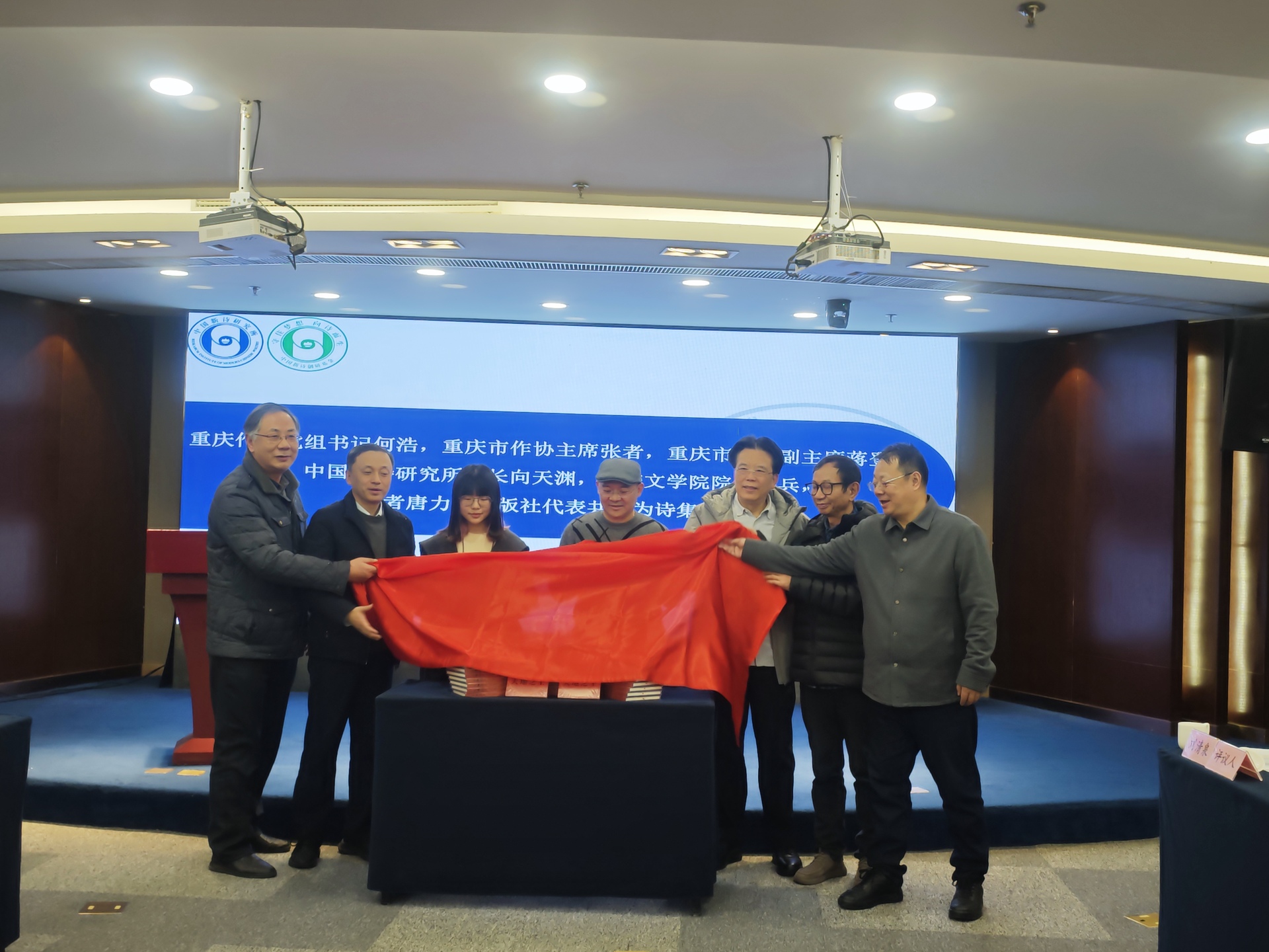 随后,何浩、张者、蒋登科、向天渊、张兵、唐力及出版社代表共同为诗集揭幕,正式拉开新书发布序幕。