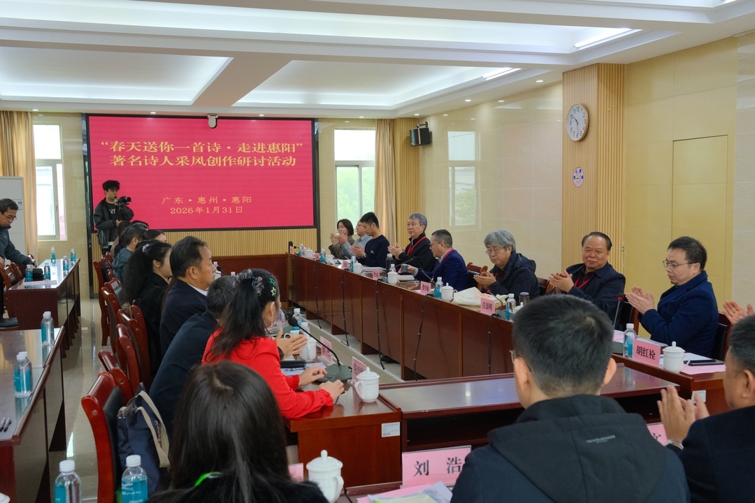 1月31日上午,拥有二十余年历史的公益诗歌活动“春天送你一首诗”走进广东惠阳。来自全国的近30位著名诗人、作家齐聚惠阳,结合惠州诗意的构建与送达展开深入研讨,如何以诗歌抒写自然,从惠州的沃土中汲取灵感,淬炼出更多诗歌精品。