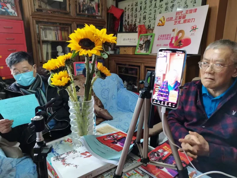 连排地点为何选在诗人家中?答案就藏在门口那块醒目的牌子上——“幸福朗诵沙龙”。这个扎根于新华路街道幸福居委会的小小沙龙,已悄然走过十余个春秋,即便在疫情最严峻的日子里,这里也从未中断过铿锵有力的朗诵声,成为邻里间传递诗意、凝聚力量的精神港湾,更见证着桂兴华数十年如一日的诗歌坚守与文化传播初心。