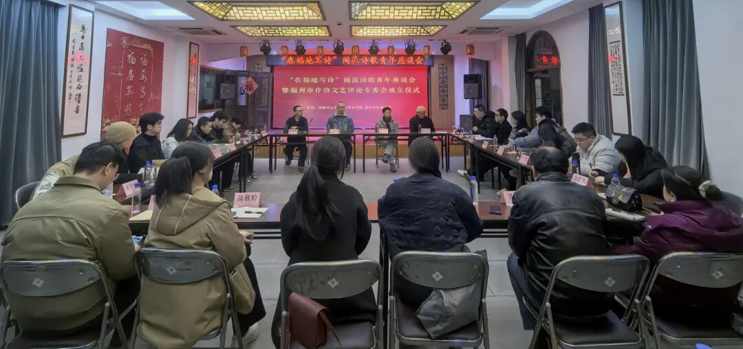 2月9日晚,由福建省文学院、福州文学院、福州市作家协会共同主办的“在福地写诗”闽派诗歌青年座谈会暨福州市作协文艺评论专委会成立仪式在福建省文学院隆重举行,汇聚福州乃至福建诗坛青年力量,围绕诗歌创作、评论与传播展开多维对话,旨在推动闽派诗歌的当代发展与在地书写。