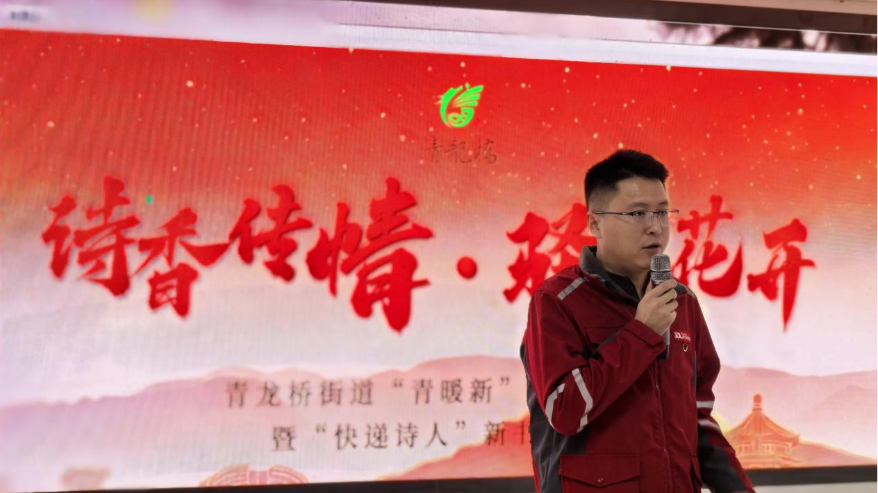 活动中,“最快小哥”栾玉帅登台朗诵。栾玉帅是快递行业的优秀代表,曾站上巴黎奥运会马拉松赛场,还担任过北京冬奥会火炬手,他以快递小哥的身份跑出了别样的人生精彩,成为新就业群体的励志榜样。此次他登台深情朗诵了王二冬为其量身创作的诗歌《每个人的赛场》,以朴实真挚的情感,将诗歌中对快递小哥奋斗与坚守的描摹娓娓道来,字字句句贴合新就业群体的工作日常,精准道出了小哥群体的追梦心声,现场小哥静静聆听,沉浸其中,不少人默默颔首,产生强烈的情感共鸣。