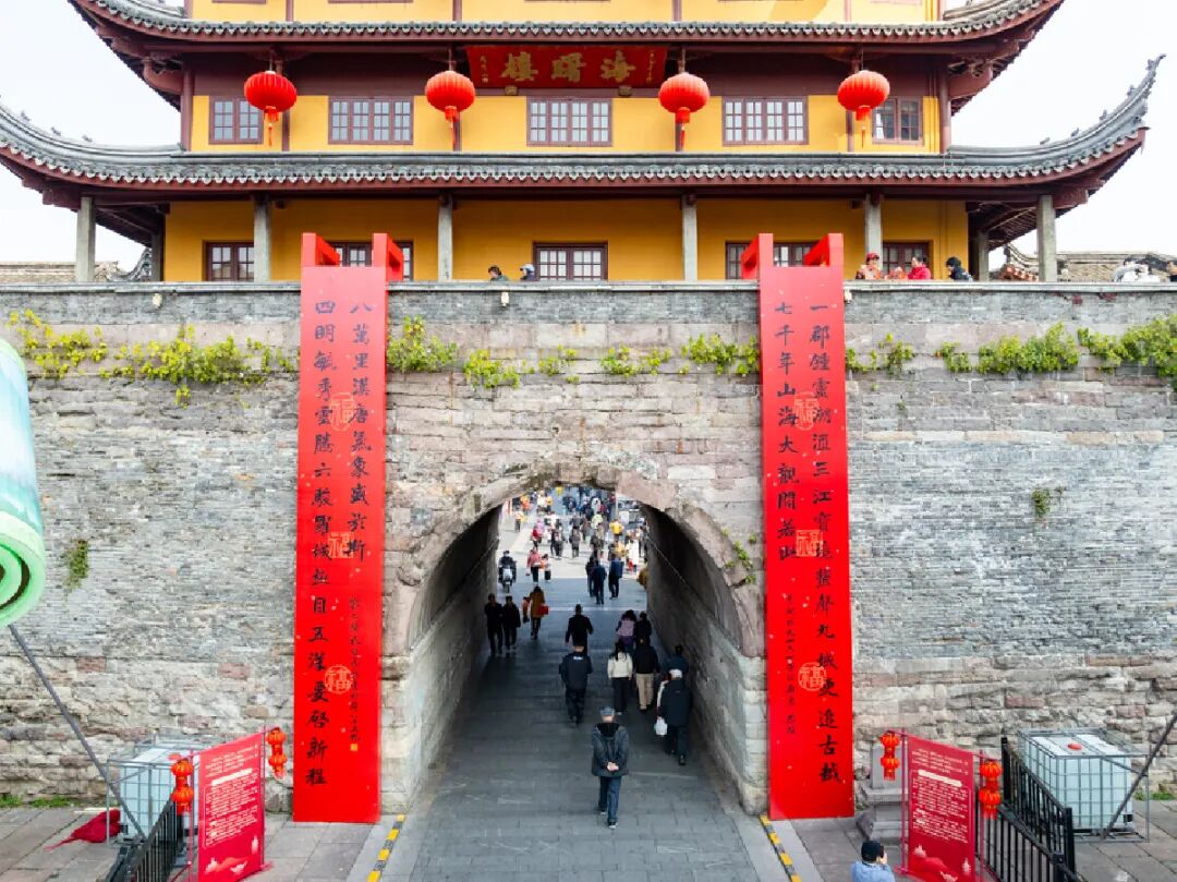 当天上午,高约8米的巨幅“龙门对”春联在千年鼓楼城墙上揭幕,共五十六字,尽写甬上地理形胜、历史底蕴与时代气象,炼字精雅、对仗工稳,文气宏大、妙语天成,以“龙门对”形式书写,笔力遒劲、墨韵凝香,堪称一幅展现宁波精神气韵的生动长卷。