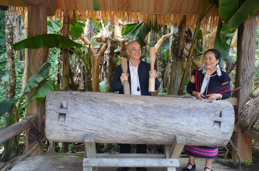 田禾(左一)感受佤族文化