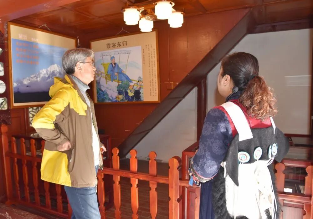 龚学敏(左)在丽江古城博物院(木府)详细了解徐霞客与木氏土司的往事