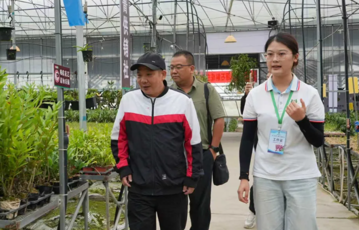 葛水平(左二)在斗南花市调研