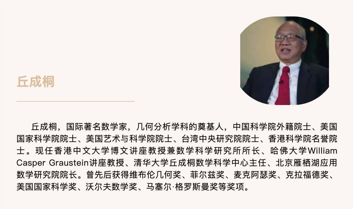 少年十五遇罡风,不畏闲言不畏穷。二十学成羽毛丰,冲天无惧效冥鸿。三十论剑畴林丛,横跨两域世罕同。四十镜对卡丘中,算学物理得共融。五十重谈时与空,相对论叹造化工。六十疏发未成翁,老骥伏枥立新功。