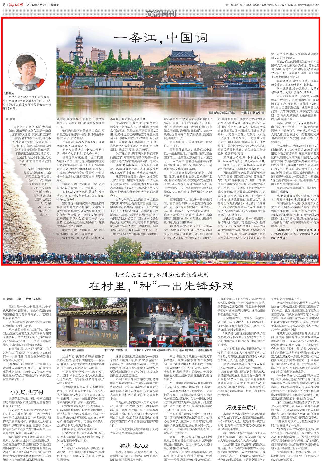(记者于山根据蒙曼3月23日在“浙西宋词之河”文化品牌发布活动上的讲话整理)