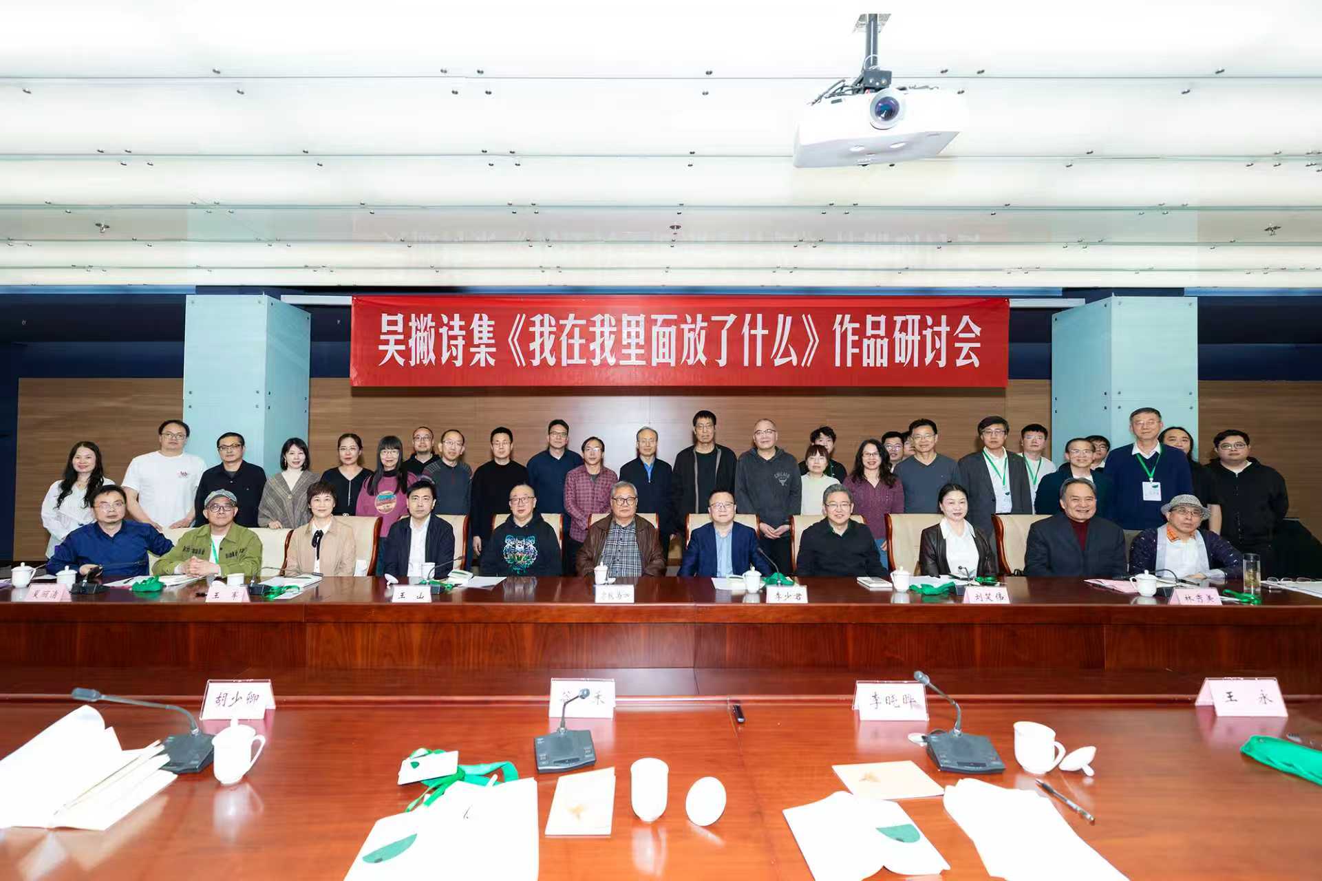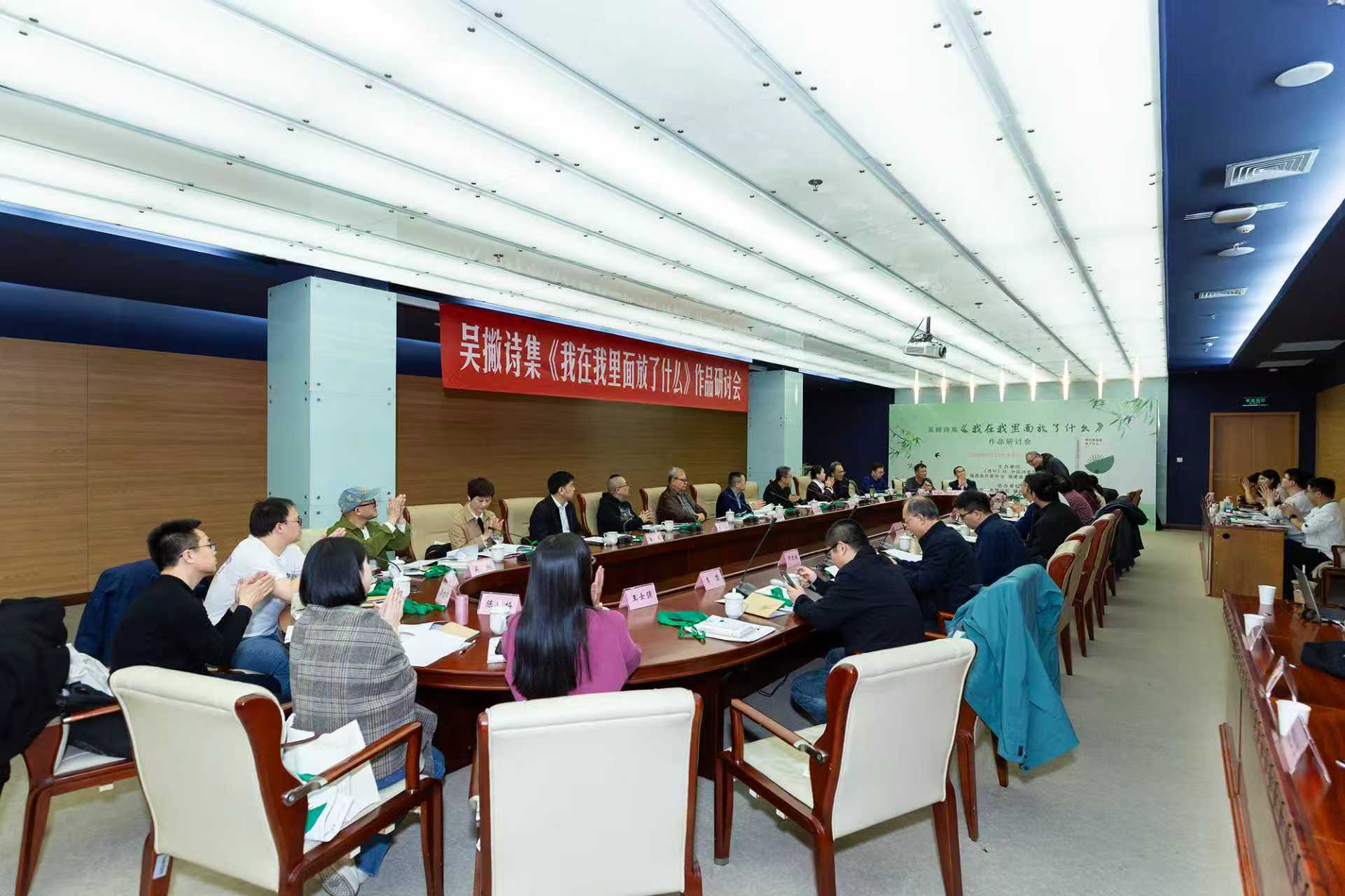 3月28日下午,吴撇诗集《我在我里面放了什么》作品研讨会在中国现代文学馆成功举办。中国作协原副主席、书记处书记、中国作协诗歌委员会主任吉狄马加,《诗刊》社主编李少君,中国诗歌学会会长王山,中国作协军事文学委员会副主任刘笑伟,中国现代文学馆常务副馆长王军,福建省文联党组成员、副主席、书记处书记、省作协副主席林秀美,福建省泉州市文联主席夏丽清,鲁迅文学奖获得者曹宇翔,《北京文学》主编师力斌,中国传媒大学教授王永,中国新闻出版研究院传媒研究所原所长李晓晔,《十月》杂志副主编谷禾,北京大学外国语学院副教授夏露,北京师范大学教授谭五昌,对外经贸大学教授胡少卿,天津社会科学院文学与文化研究所研究员王士强,江苏凤凰文艺出版社副总编辑李黎等三十余位诗人、编辑、评论家莅临现场,与会者结合吴撇的双重身份,深入剖析了其诗歌创作中丰富多元的特质,活动由中国诗歌网总编辑金石开主持。