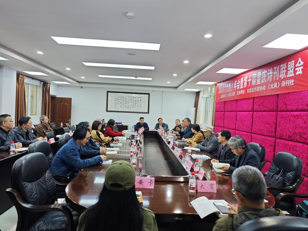 3月29日,“2026《大风》年会暨第十届重庆诗刊联盟会议”在大足区举行,来自重庆诗刊联盟各成员单位的编委、诗人及编辑代表等齐聚一堂,总结过往发展成果,共话诗歌创作与刊物发展新路径。此次会议由大足区文联指导,大足区作家协会与《大风》诗刊社共同主办,同步举行《大风2025》年度刊发布暨重庆诗人“看大足、写大足”采风活动。