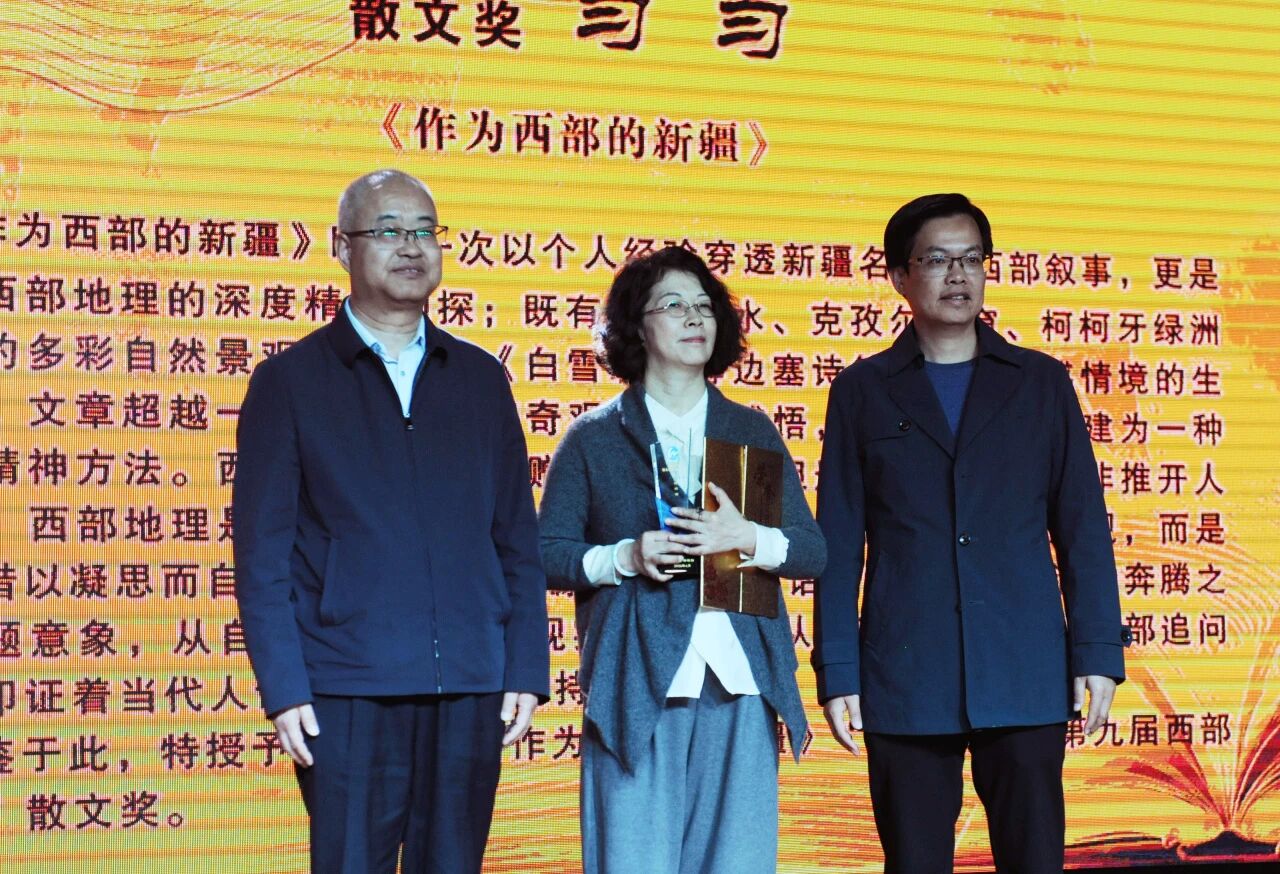 4月3日,那拉提杯·第九届西部文学奖颁奖典礼在伊犁哈萨克自治州新源县隆重举行。颁奖典礼由新疆维吾尔自治区文学艺术界联合会、中共伊犁哈萨克自治州委员会宣传部主办,新疆文联第一期刊中心《西部》编辑部、伊犁哈萨克自治州文学艺术界联合会、中共新源县委员会、新源县人民政府、扬州对口支援新源县前方工作组承办。