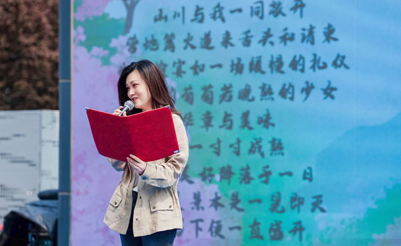 戴潍娜的《盛开》将生命最美的刹那凝成永恒,相信“若写下,便一直盛开”。苏笑嫣的《春天把我们吹出声来》让灵魂在春风中变得清透明绿,爱情与万物一同复苏。王彻之的《白鹭湾》则在日常与超现实之间,以白鹭与海浪描摹春天的边界与不完美。从春雷到灯火,从寂静到笑声,从乡愁到爱情,诗人们用语言织就了一幅斑斓的春日长卷,让每一位听众都在这场朗诵中遇见了心中的春天。