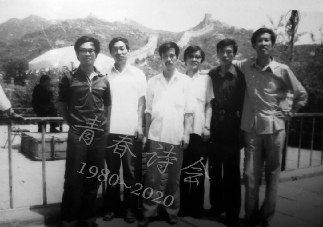 左起:叶延滨、孙武军、徐晓鹤、陈所巨、杨牧、张学梦、舒婷