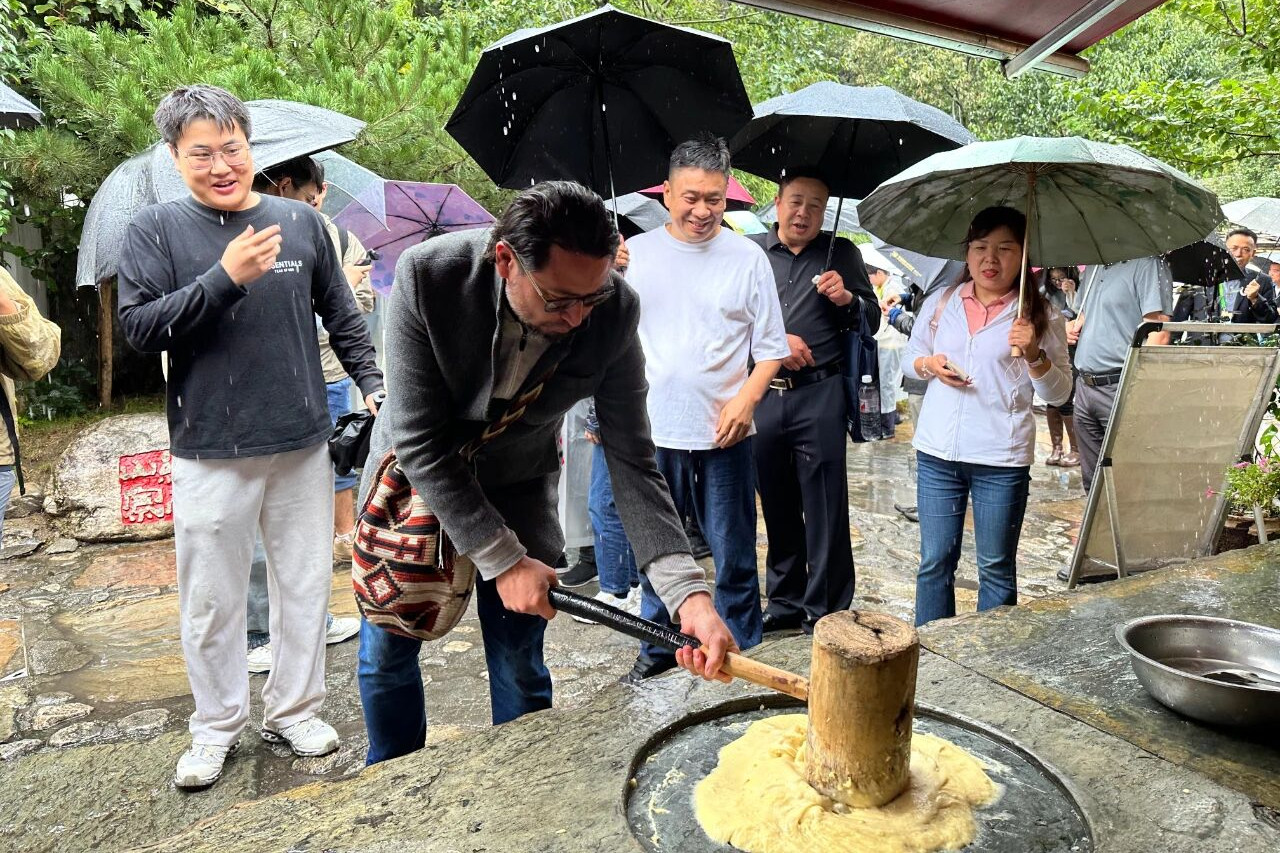 拉美诗人体验捶打糍粑
