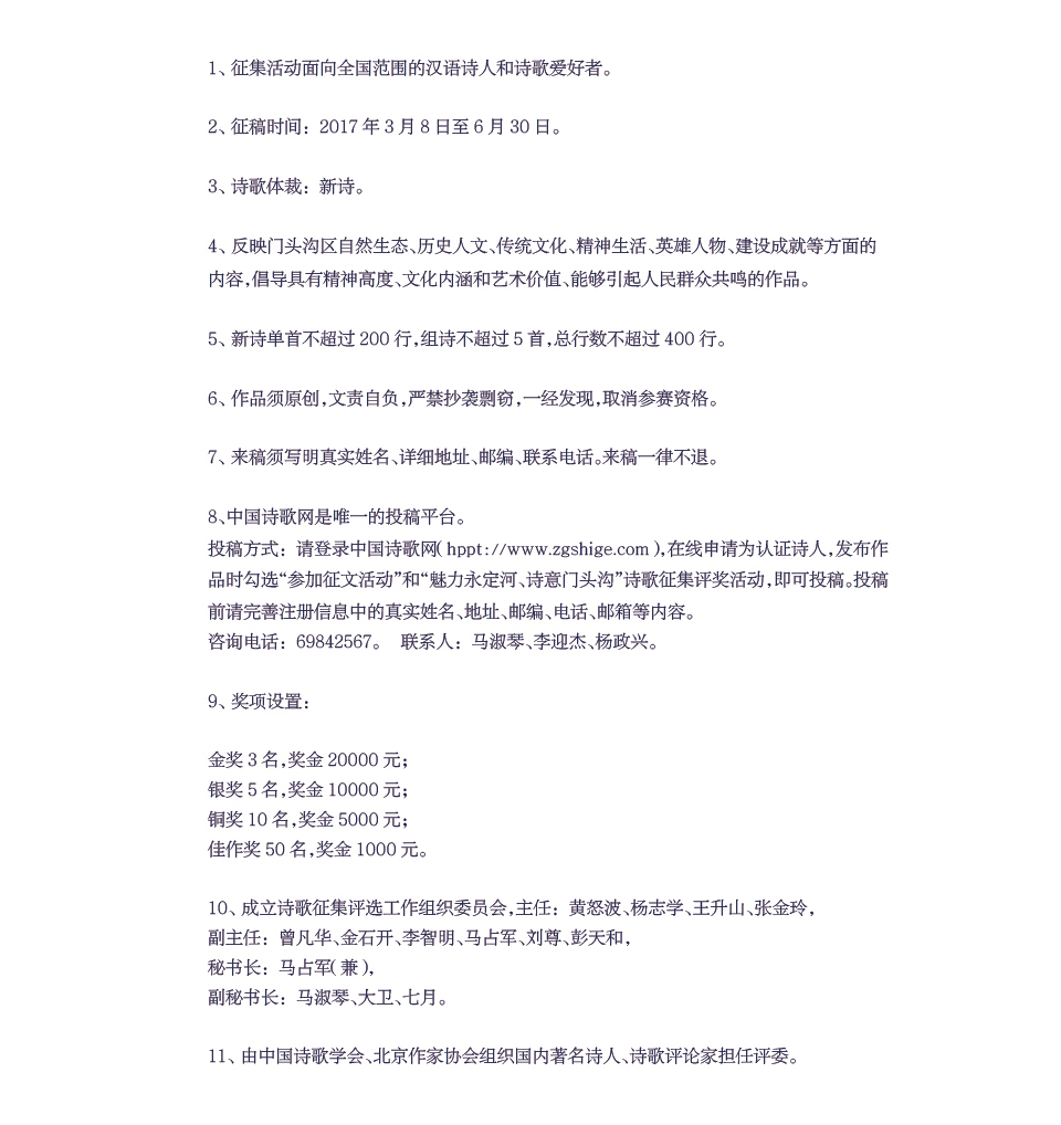 “魅力永定河·诗意门头沟”全国诗歌征集评奖组委会