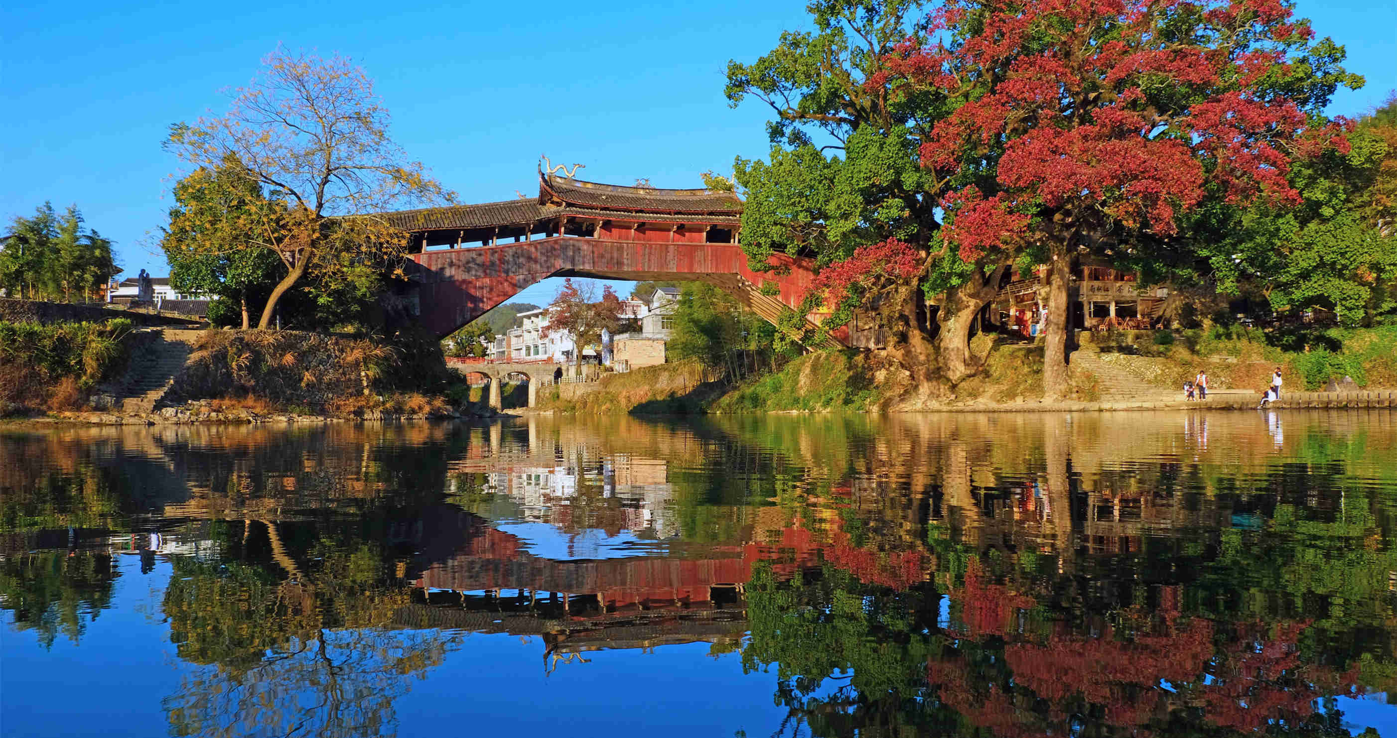 治愈系封面。在古老廊桥边,东溪之上