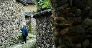 血缘古村落里由斑驳的鹅卵石砌造的